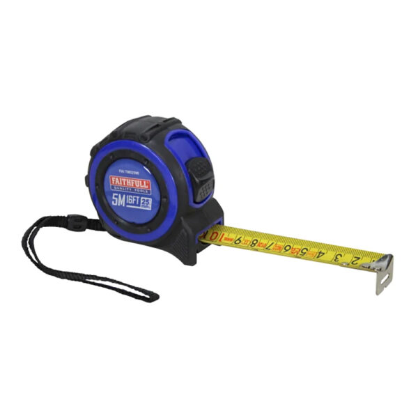 The Faithfull Trade Tape Measure is a high-quality measure that is perfect for tradesmen, thanks to its long stand out and tough impact resistant ABS casing. It features a class II blade that is Nylon coated to protect agaisnt abrasions and corrosion. The blade width of 25mm provides a long standout of 2.3m, allowing easy, single person measuring from a distance.