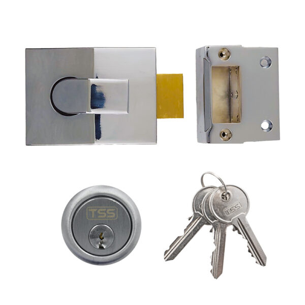 The TSS 60mm Deadbolt Rim Nightlatch is part of the TSS modern nightlatch range, this particular variant is the more unusual deadbolt version featuring a manually operated deadbolt instead of a sprung latch. Ideal for securing doors where slam shut security is not required and where it is more appropriate for the user to manually secure the door by way of deadbolt.