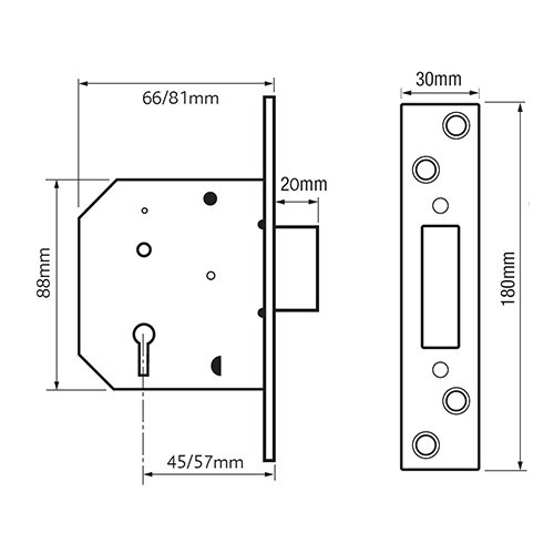 Supplied with 3 keys and two keyhole escutcheons, one with a cover and one plain, for convenience and value, this lock is also available in brass, satin chrome and chrome finishes.