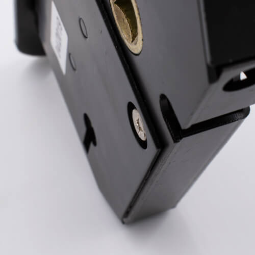 This TSS British Standard BS3621:2007 5 lever mortice sashlock has black powder coating with rounded forend with square faceplate.