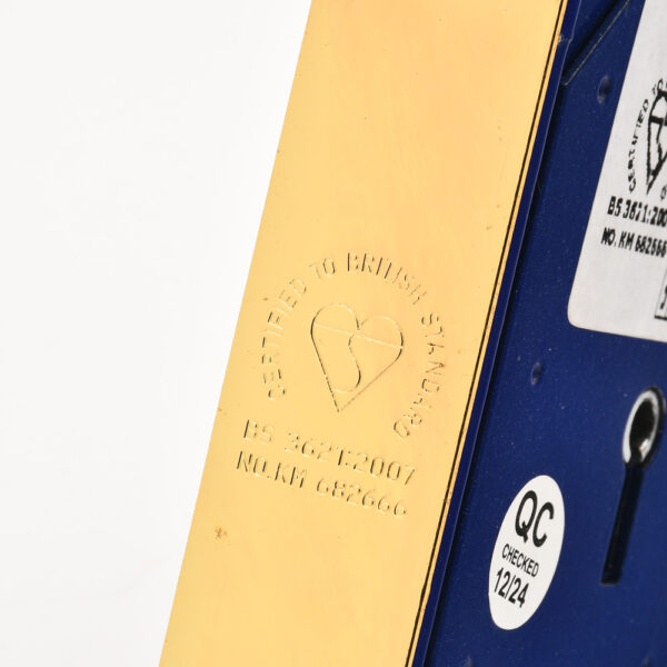 These locks have the distinctive upright design and meet the requirements of British Standard BS3621: 2007. To meet the requirements of British Standard BS3621, the deadbolt throws at least 20mm from the body of the lock to ensure positive deadlocking and additional resistance against attack.