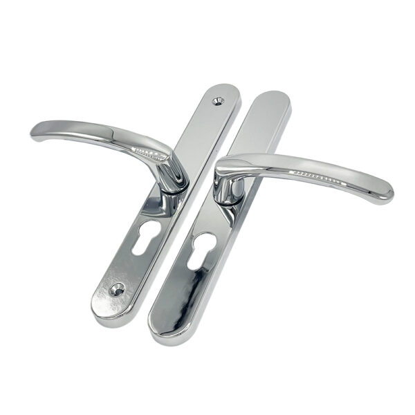 The 48mm PZ TSS lever/lever multipoint door handle is a high-quality multipoint door handle that is available in a range of finishes, including white, black, polished chrome, silver and polished brass.