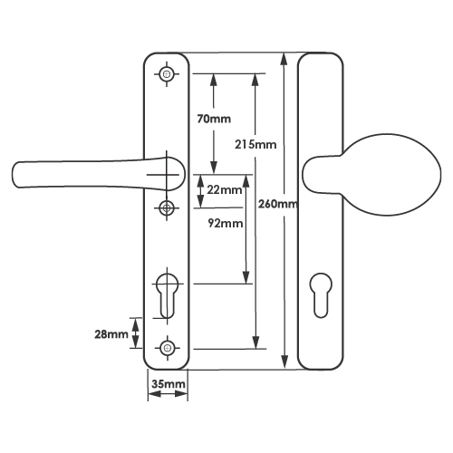This handle has a backplate measuring 260mm and outer screw centres measuring 215mm. It is a durable and reliable handle, The handles have undergonecycle testing of over 50,000 operations. The polished chrome, silver, gold and polished brass finish has undergone salt spray testing for over 240 Hours.