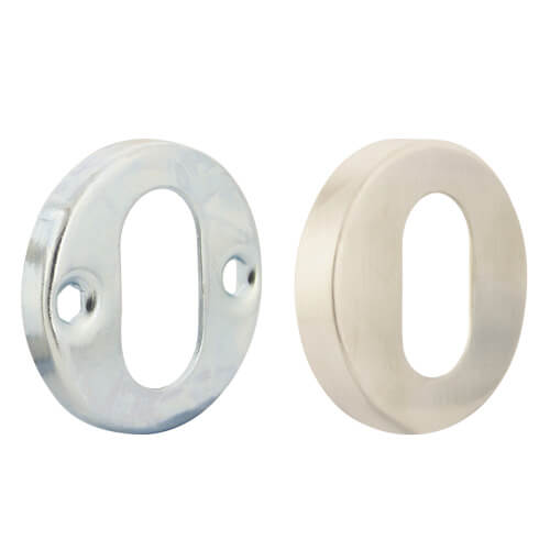 A modern escutcheon plate to suit oval cylinders available in chrome, brass and satin chrome finish.
