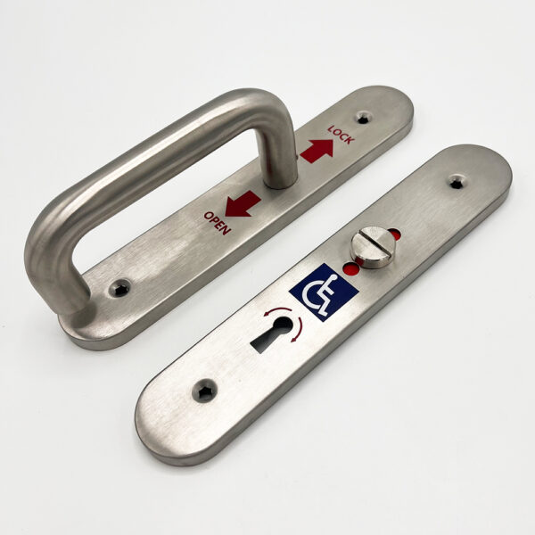 The TSS NKS Lockset is an alternative bathroom mortice lock and handle set for disabled toilet doors. It is a direct replacement for RADAR and NKS locks but is not handed, so the latch can be reversed. To reverse the latch simply remove the faceplate, rotate the latch to your chosen position and replace the faceplate.
