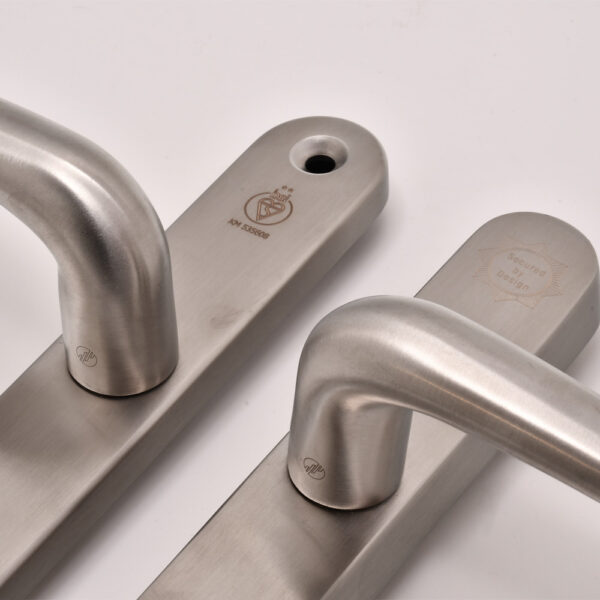 The TS007 2 Star Handles have the BSI Kitemark etched on the internal backplate and are Secured By Design (Police Preferred Spec) and have the SBD logo etched on the external backplate as a deterrent.