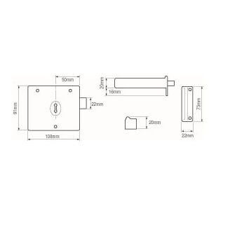 With a 3 lever mechanism and a backset of 50mm, this rim deadlock has a bolt throw of 13mm.
