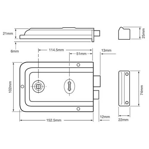 The Union 1445 Rim Sashlock is a typical cost effective non handed Rim Sash lock with designed for use as a basic security surface mounted product in residential or light commercial environments. the 2 way key hole ensures the lock can be mounted either way up to prevent the need for any re handing, and the 2 extended length keys provided will reach through the thickness of the door from the outside. The 1445 features a bevelled edge and rounded corners.