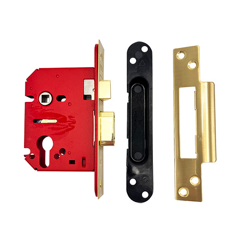 The 14mm deadbolt is both locked and unlocked via a euro profile cylinder. With hardened steel pins providing resistance from sawing. Bevelled edge on the deadbolt improves the performance under side load testing.