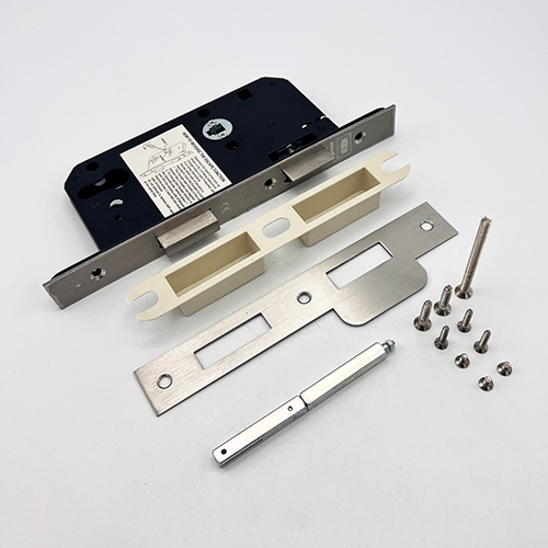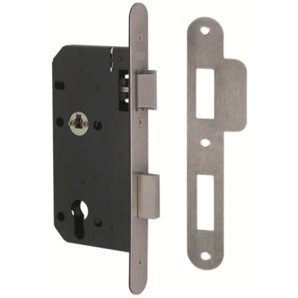 Latch bolt is withdrawn from both sides via lever operation, the deadbolt is withdrawn from inside lever operation and key operation from the outside. Accepts bolt through furniture with 38mm centres.