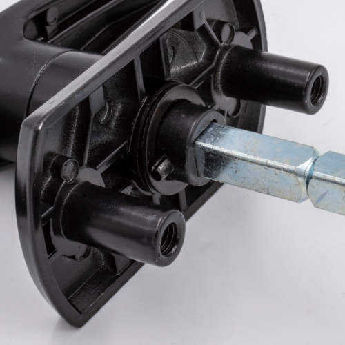 Universal Garage Door T Handle – Screwhole in end of spindle – Square Spindle – Long Lugs – Rear Fix