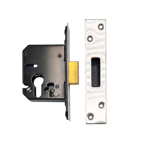 Zoo Euro Profile Dead Lock with Stainless Steel Face & Strikes available with either a 44mm or 57mm backset. These are available in PVD brass or Satin Stainless Steel finishes.